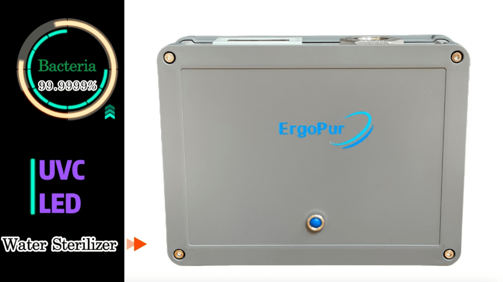 The ErgoPur UV-LED Water Sterilizer is a portable device that uses ultraviolet light to disinfect water. It is designed for use in RVs, boats, and other outdoor settings where access to clean water may be limited.