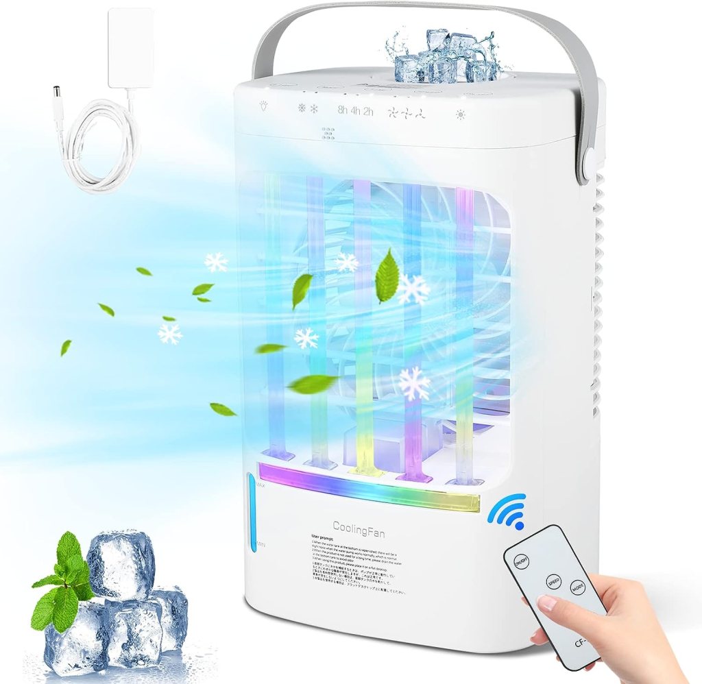 - CEROBEAR Rechargeable Portable Air Conditioner: This device also uses evaporative cooling to cool your surroundings. It has a built-in fan and a rechargeable battery, making it portable and convenient to use.