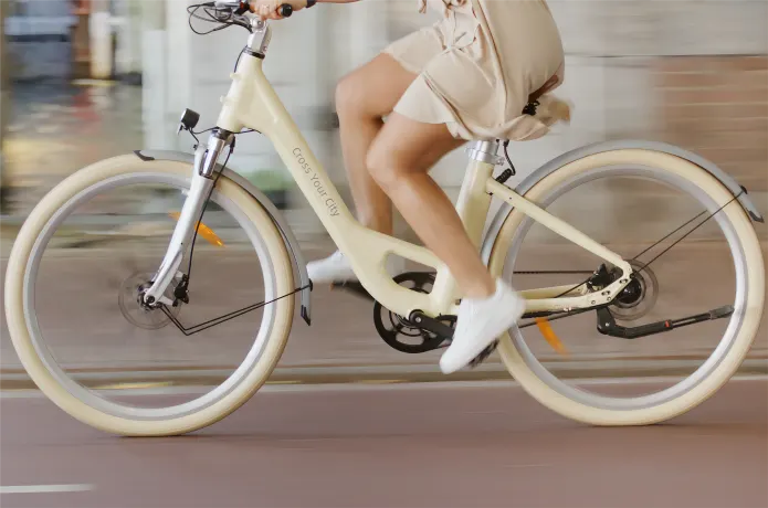 - A step-through frame that makes it easy to get on and off the bike.