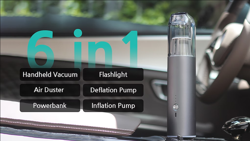 The Trapom Pro is a 6-in-1 vacuum cleaner, air duster, in/deflation pump, flashlight, and power bank. It has a powerful motor that produces 17kPa/0.5psi pressure and 600L/Min airflow max, making it ideal for cleaning dust, dirt, and debris from a variety of surfaces. It also has a built-in thermal sensor that automatically shuts off the air pump to avoid overheating.