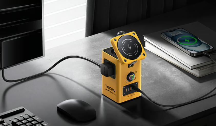 The World’s First Aurora Wireless 140W GaN Desktop Charger is an innovative charging solution that combines cutting-edge technology with convenience. Here are the key features: