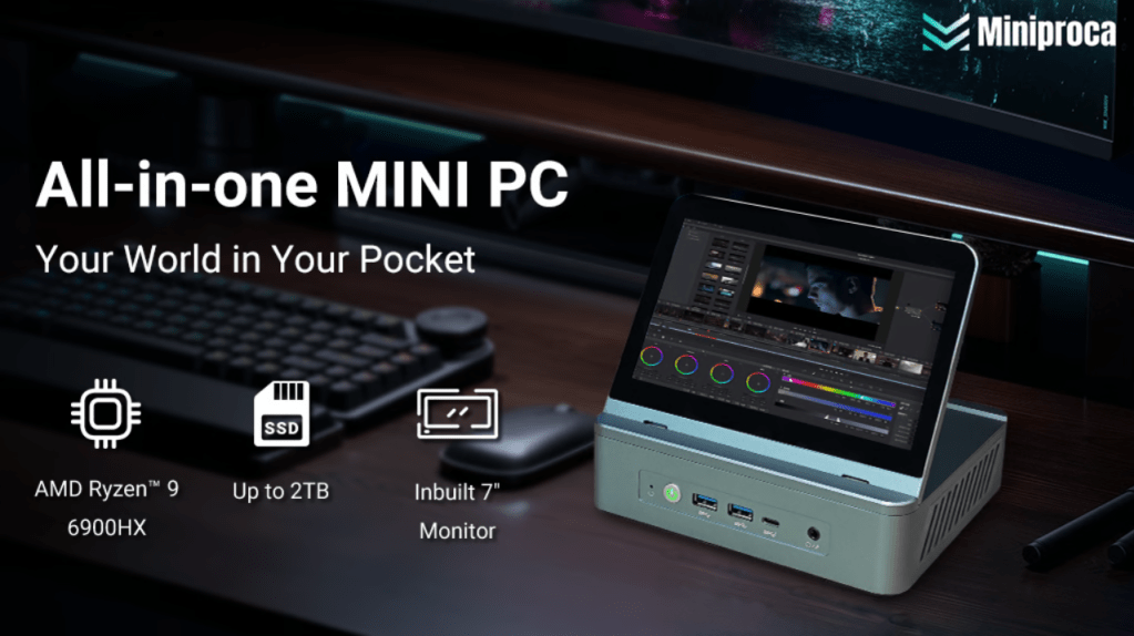 The Miniproca is a powerful all-in-one mini PC that features a built-in 7-inch multi-touch display. Here are some of its standout features: